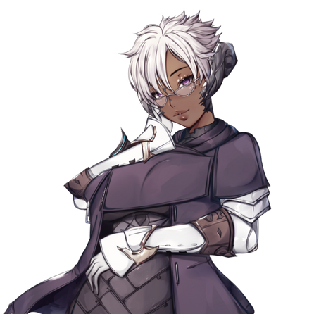 Distinguishing Marks: Much of her previous marks were carried over, despite them being scars collected in during her time conscious, holding them as defining features to who she is, she transferred them to her Miqo'te form Three slim claw marks separate her right eyebrow into four segments. A shallow cut across her cheek. Sprouting from her forehead, an Electrope third eye stares through those before her, dazzling with Levin. Aetheric receptors hanging from her cheek and temples bounce with each confident step, often mistaken for whiskers.. Or perhaps that's on purpose.Down her left forearm, one can find a disfiguring scar, something she isn't too fond of discussing. Finally, constellations, depictions of heavily bodies, and luminous stars scatter across much of her body in glowing ink.